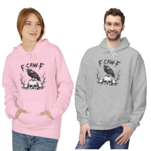 Unleash your dark side with the F-Caw-F Raven and Skulls Unisex Hoodie, a perfect blend of comfort, attitude, and gothic flair. Featuring an intricately detailed raven perched atop skulls against a haunting backdrop, this design embodies rebellion, mystery, and power. Printed on a midweight fleece hoodie, it delivers warmth without bulk—ideal for chilly nights, concerts, or Halloween gatherings.