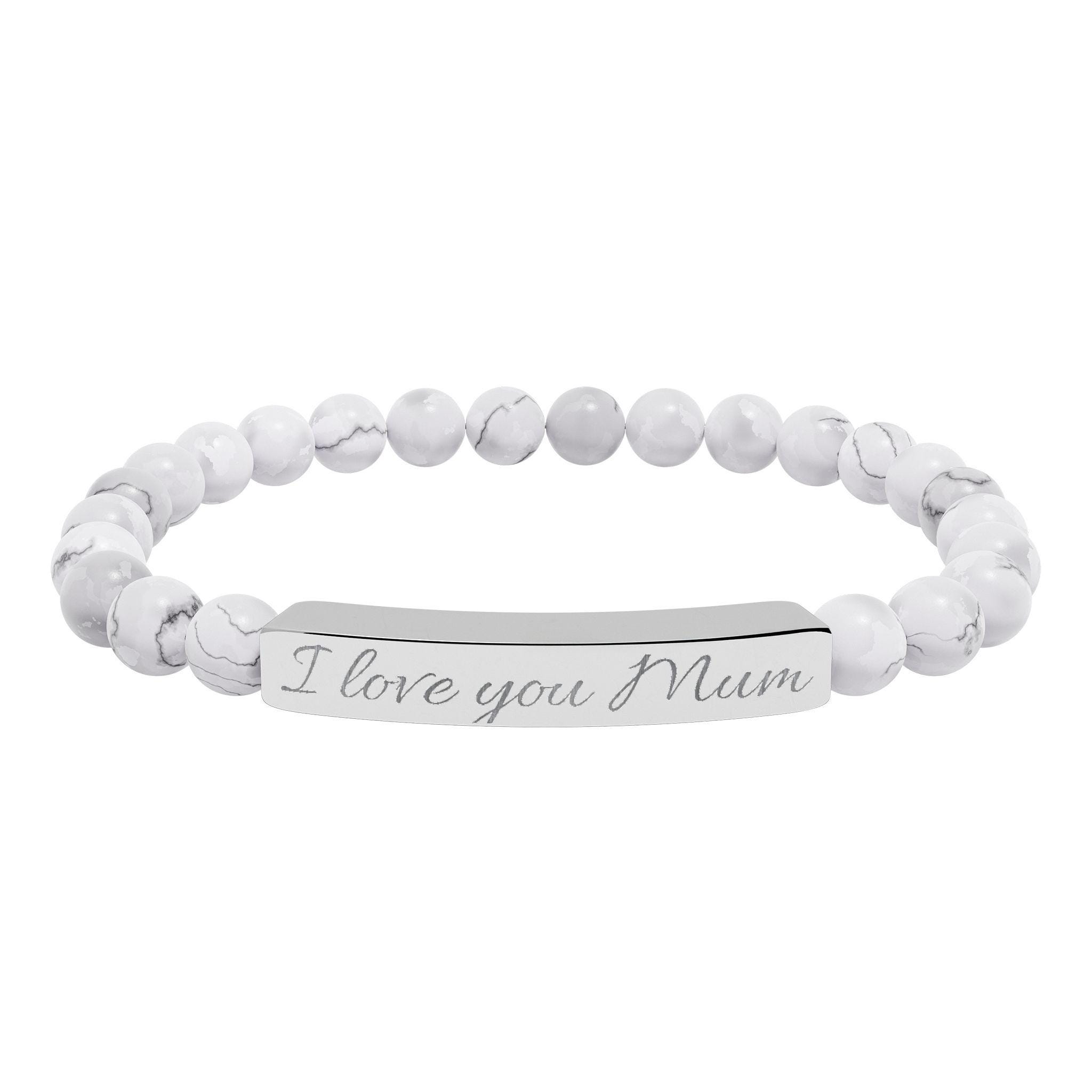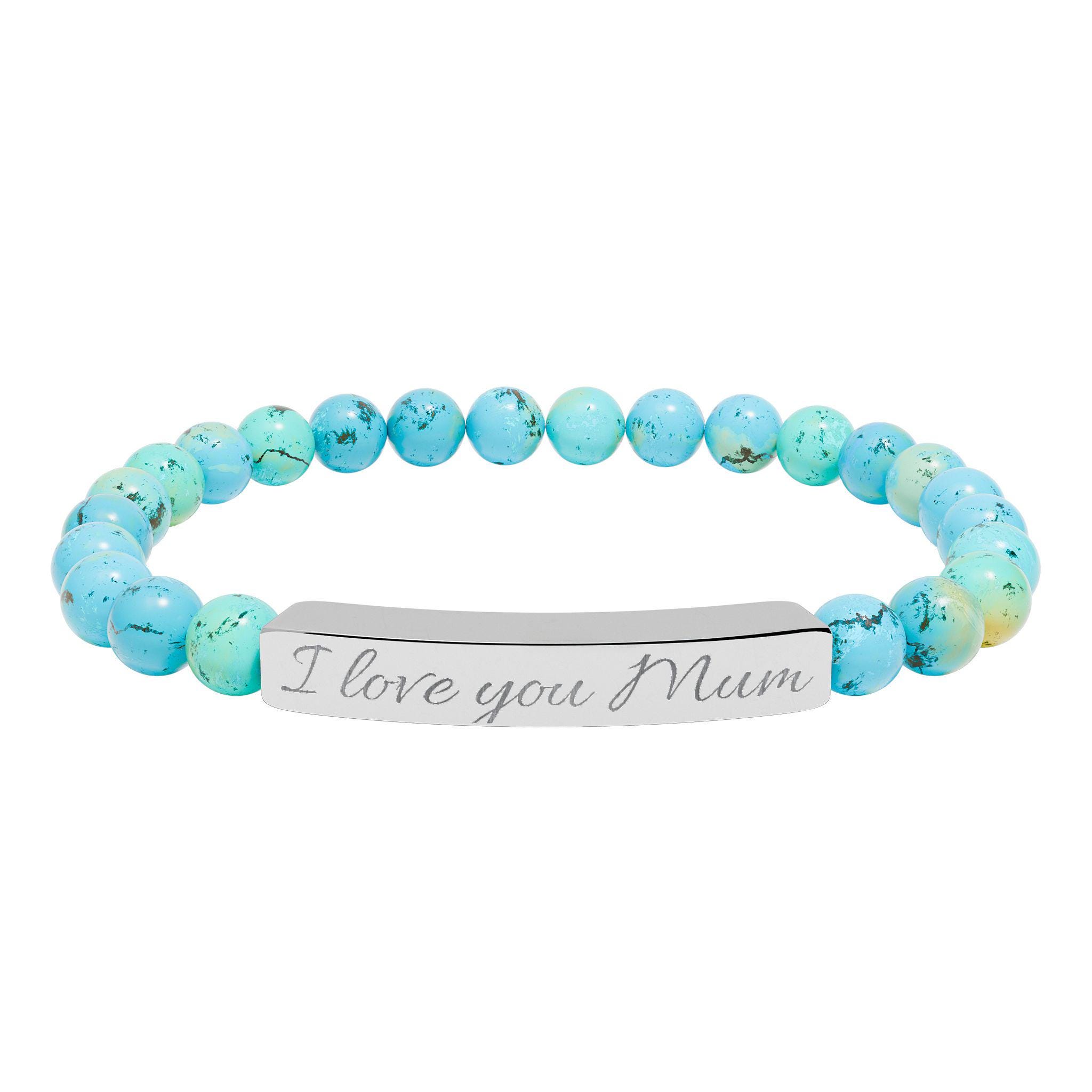 I Love You Mum Engraved Natural Stone Bracelet - Mother's Day Gift