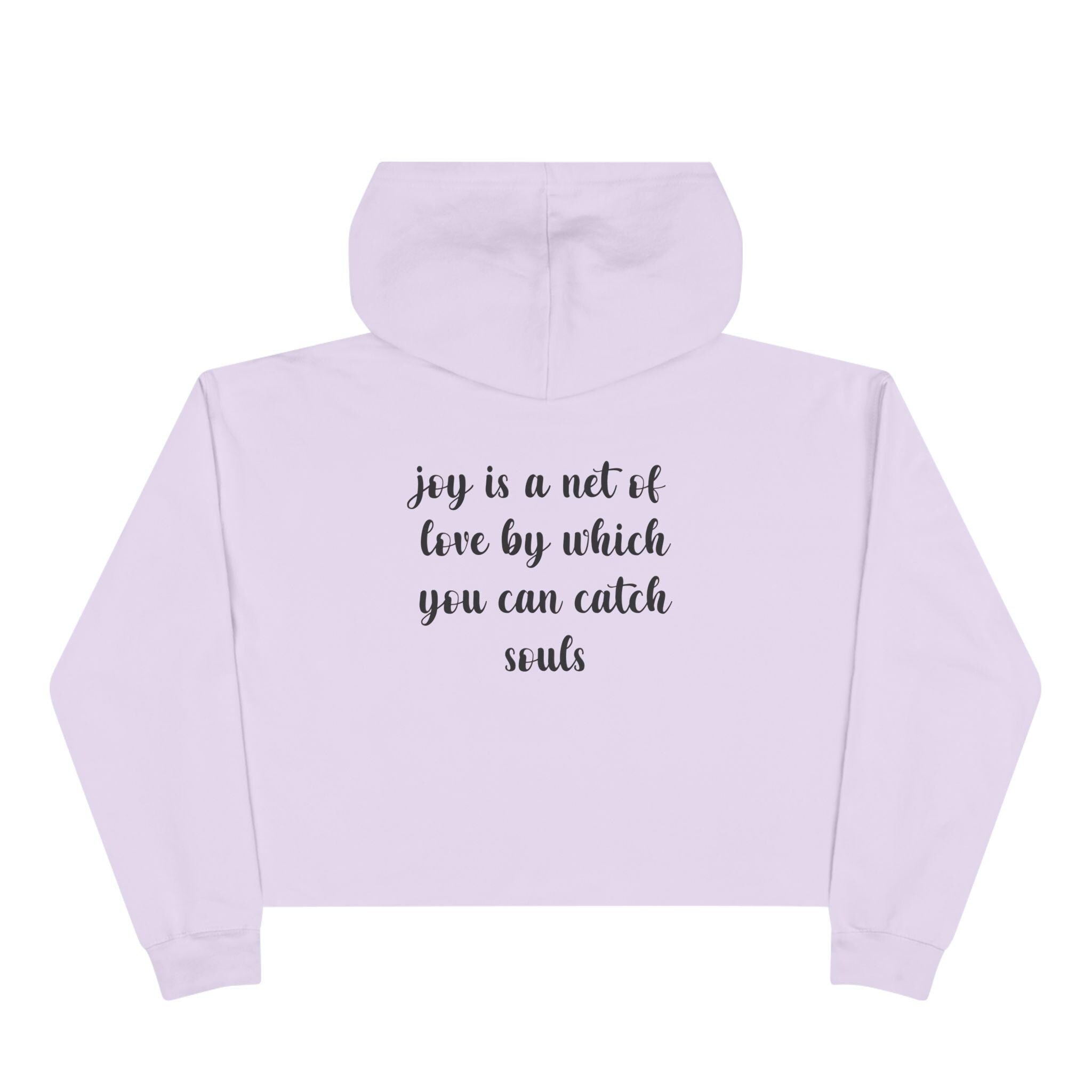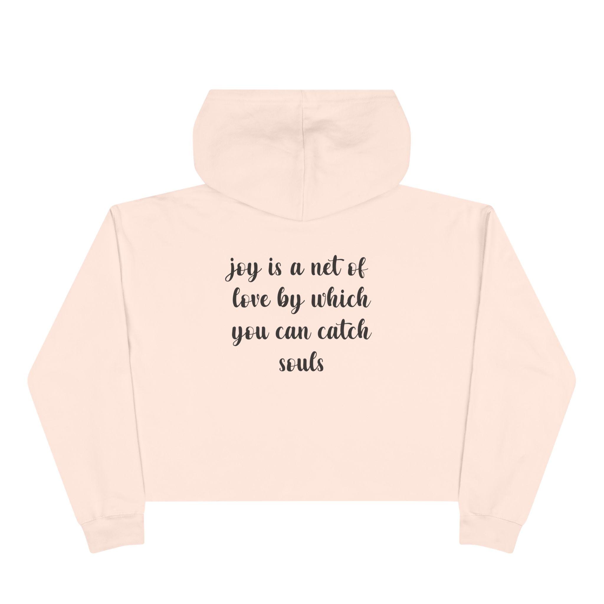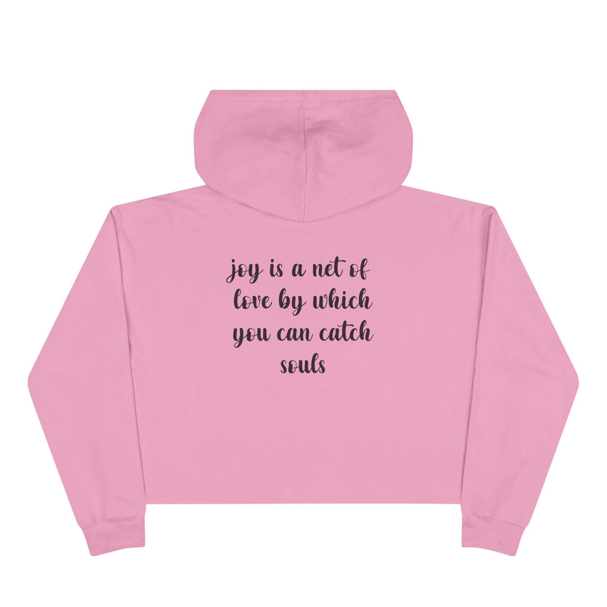 The playful reindeer illustration adds warmth and personality without feeling loud or over-the-top, while the soft brushed fleece interior keeps things comfortable and familiar. A gentle handwritten quote across the back - “joy is a net of love by which you can catch souls” - adds a quiet, thoughtful detail that makes this piece feel special.