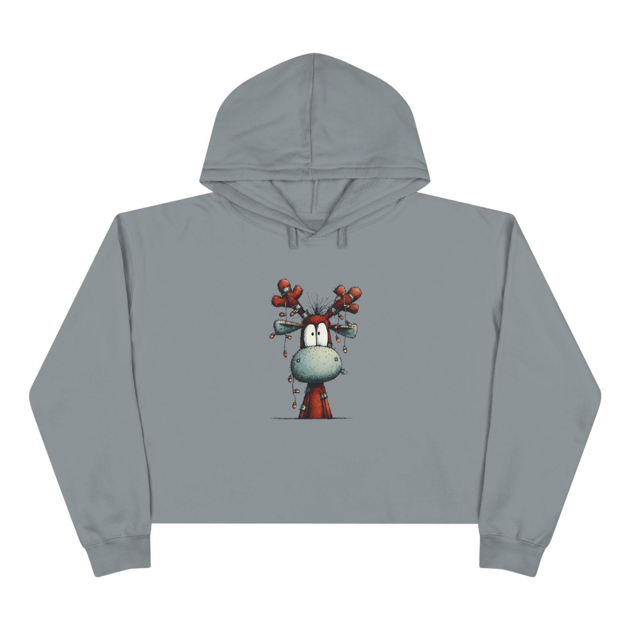 Reindeer Crop Hoodie – Cozy Winter Graphic Hoodie, Cute Holiday Pullover, Cropped Sweatshirt for Women